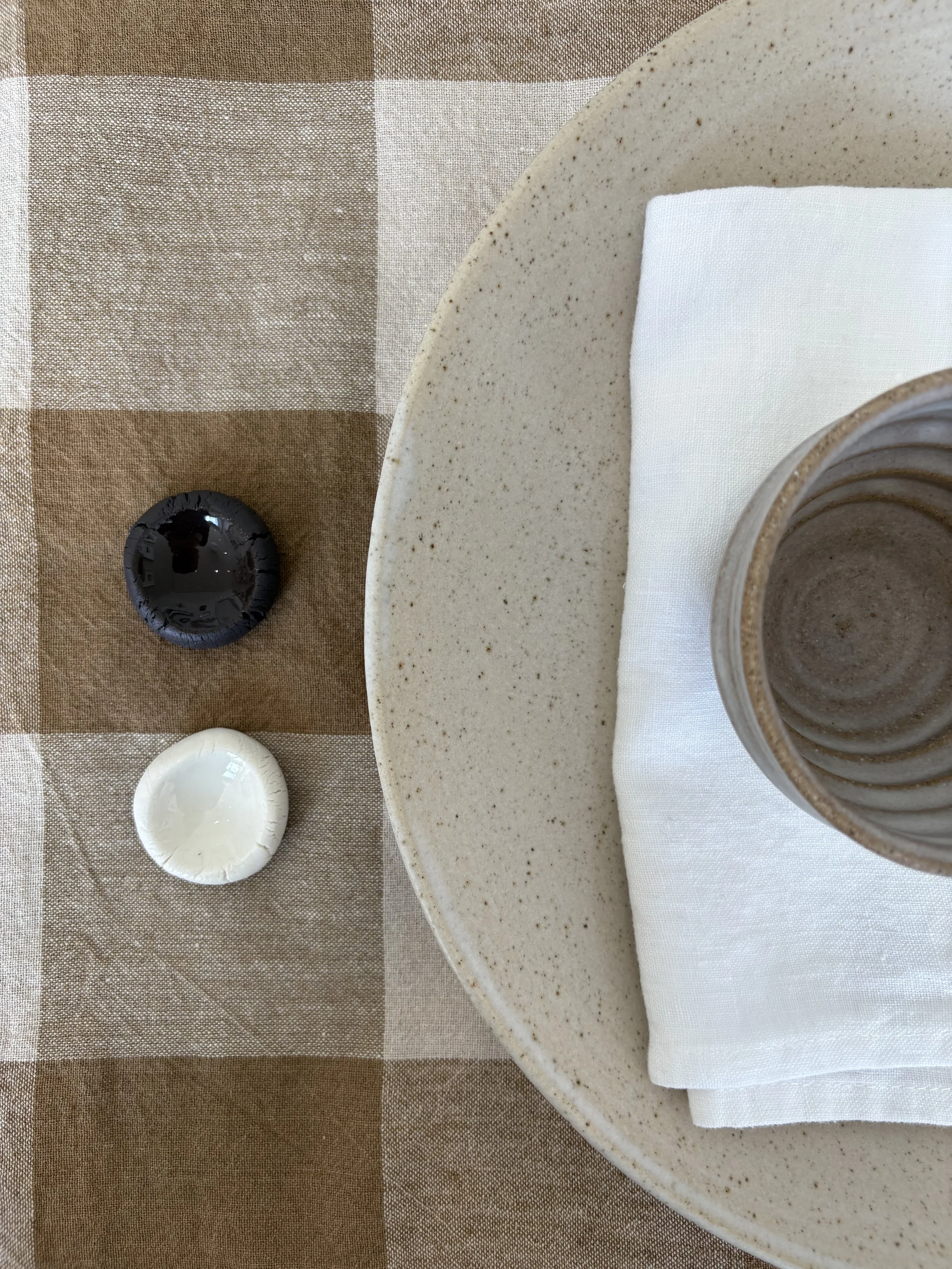 Additionally, Norman Prahm were interested in dressing the kitchen with linens that work with both their colour scheme and our handmade pottery. We worked together on selecting linens from our collection to have in the kitchen dining space, small details that make a big difference to the feeling of the interiors.
